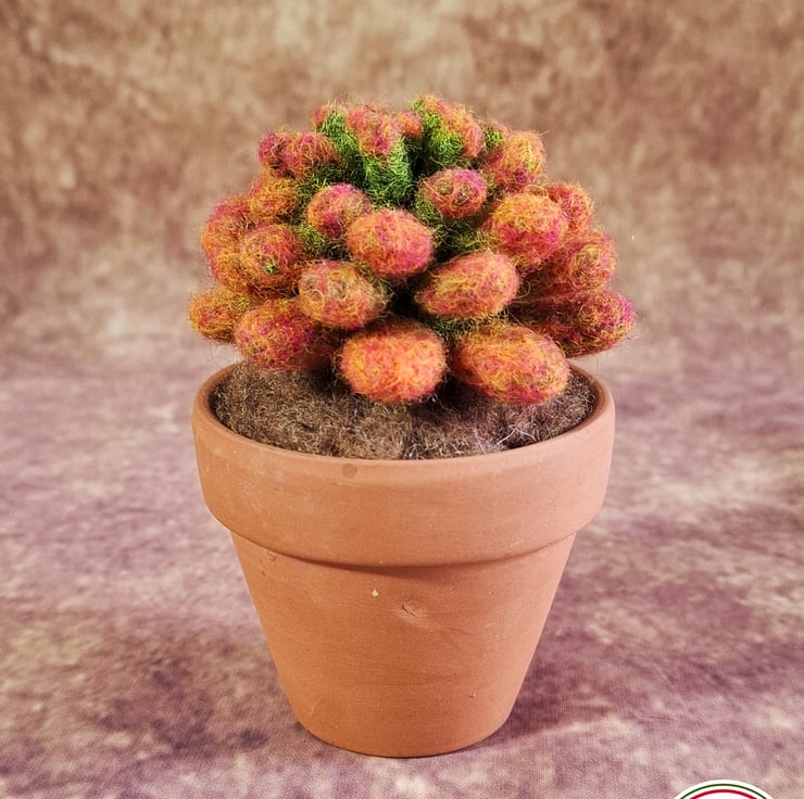 This is a Sedum Crassulacaea succulent plant, needle felted with natural wool fibres.