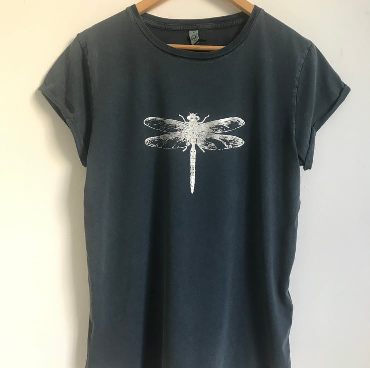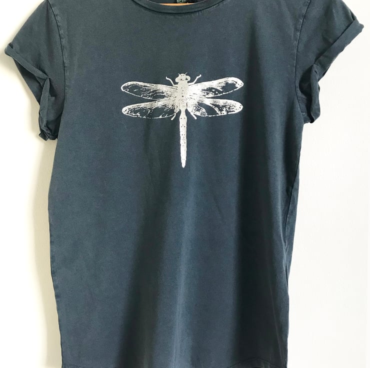 Dragonfly Womens organic cotton rolled short sleeve stonewash denim blue tee