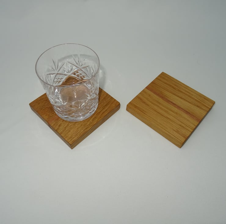 The coasters are made primarily from Oak with decorative stripe Black Walnut in the centre.