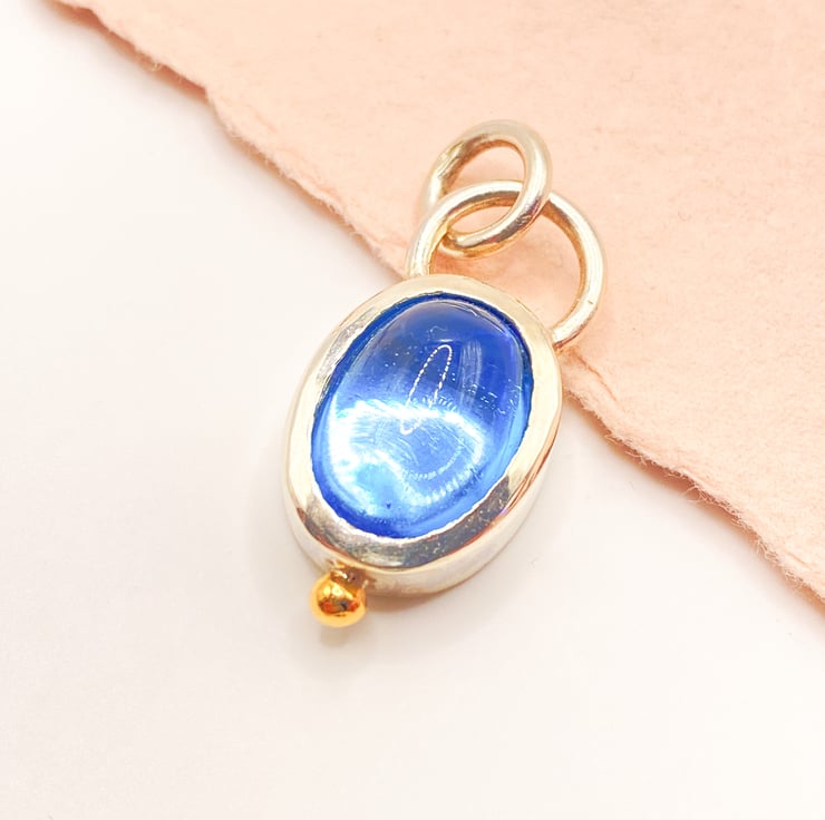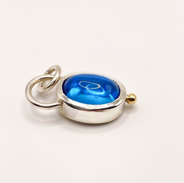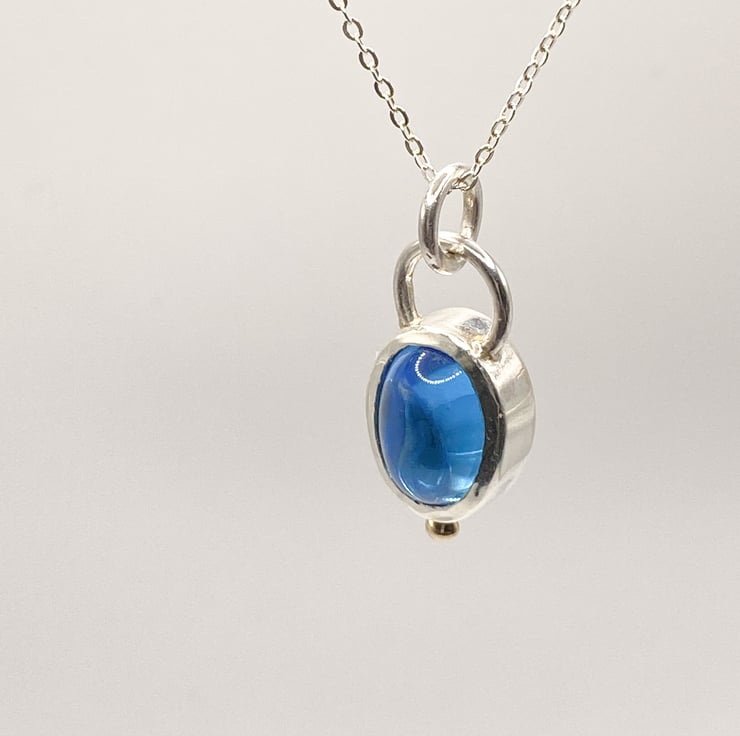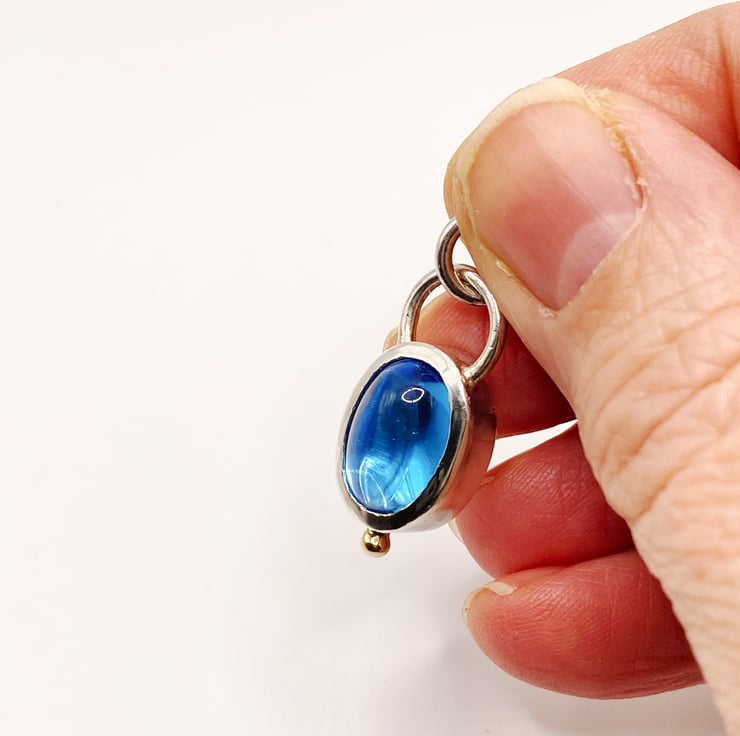This handmade pendant features a large Swiss blue topaz cabochon, glowing with the vibrant energy of clear skies and open seas. The stone’s smooth, domed surface catches the light beautifully, radiating calm and clarity. It’s cradled in a high-polish sterling silver bezel, adding a sleek, luminous contrast that highlights the natural beauty of the gem. The design is simple yet striking—perfect for layering with beads and charms or wearing solo as a soulful, statement piece. A perfect blend of bohemian elegance and artisan craftsmanship, made for dreamers, wanderers, and lovers of unique, natural style.