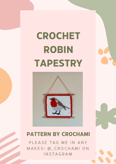 This pattern includes all the instructions you will need to make a Robin Wall Hanging with a cute frilly border using tapestry crochet techniques. I would recommend you become familiar with crochet tapestry and changing colours before you begin this pattern, but some guidance is given