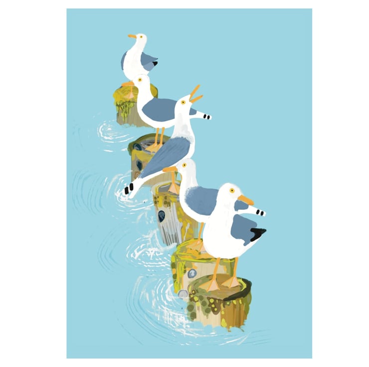Living in Scarborough gulls are part of the landscape and their calls can be heard across the rooftops and down by the shore. This card is a great coastal card blank inside so good for many occasions even a quick little note.