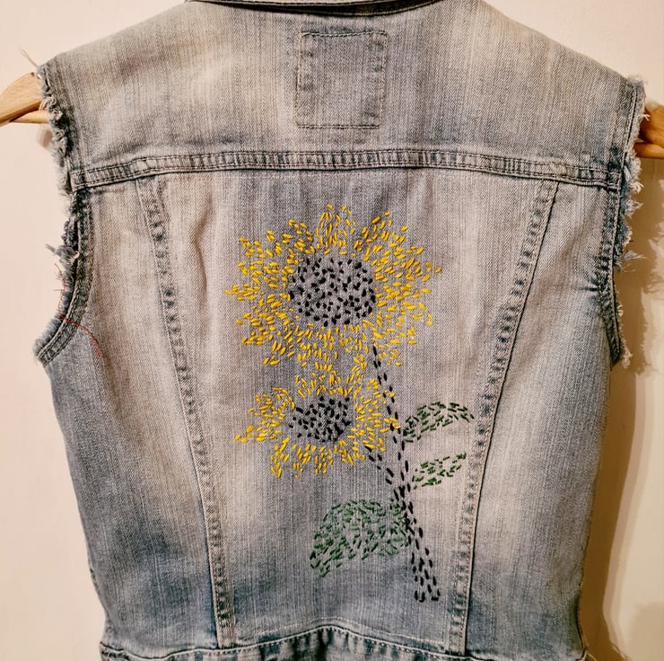 The sunflower, a symbol of pure love, positivity, and strength, seemed like the perfect addition to bring out the jacket’s true power.