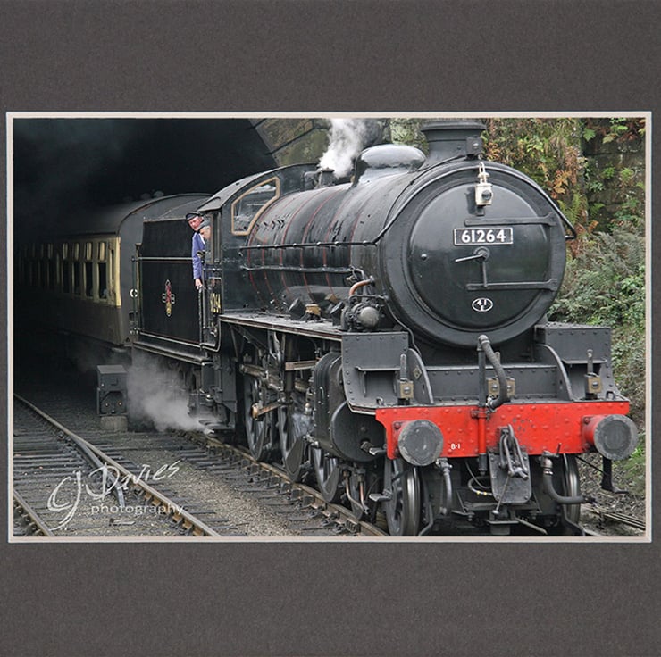 Locomotive on the NYMR leaving the tunnel heading into the station at Grosmont, North Yorkshire.