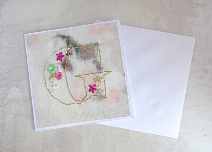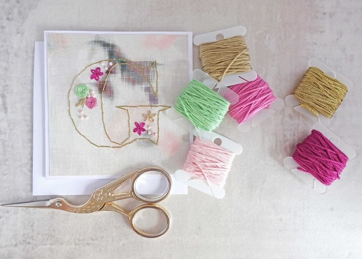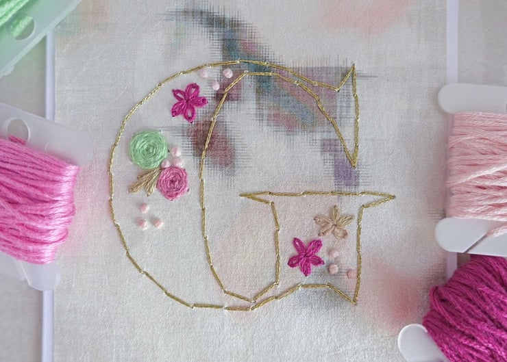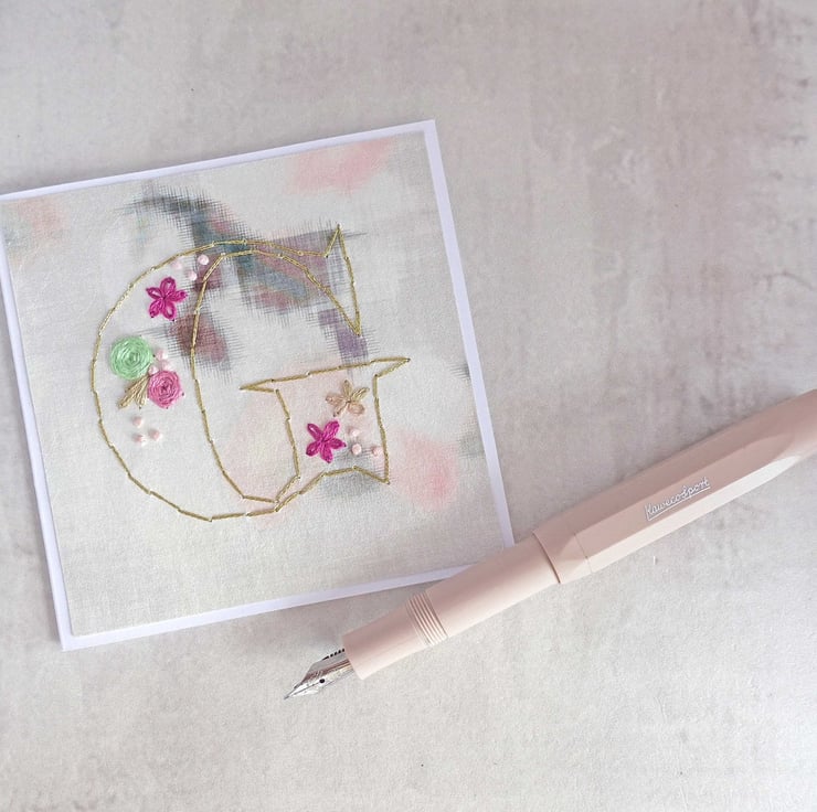 - Hand stitched with metallic thread for letter outline and filled with coloured cotton to give a tactile feel.