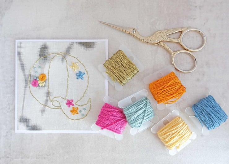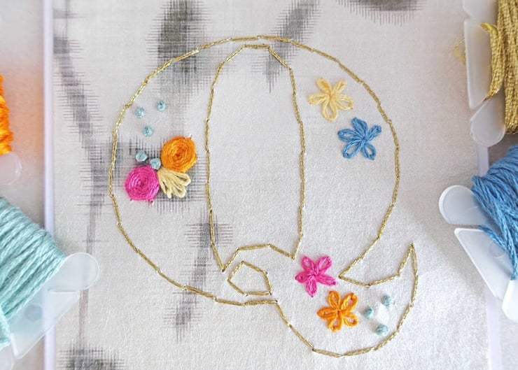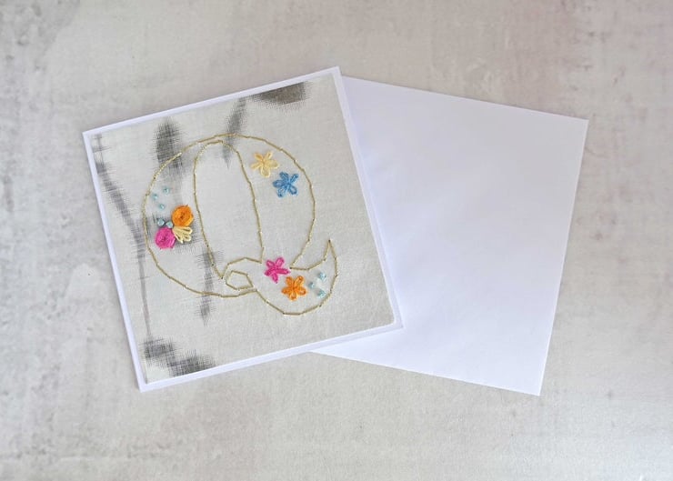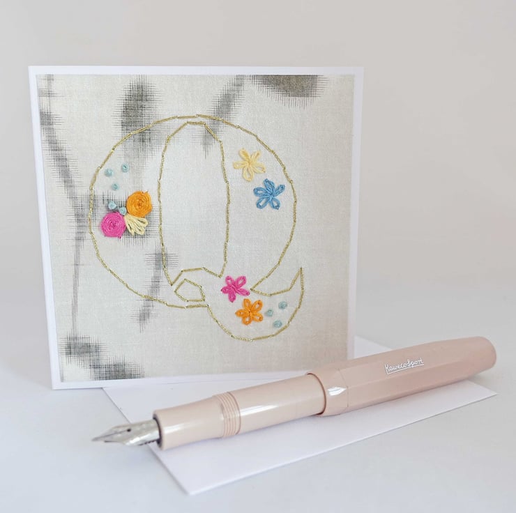 - Hand stitched with metallic thread for letter outline and filled with coloured cotton to give a tactile feel.