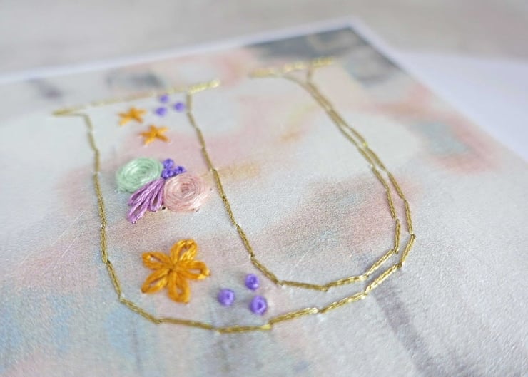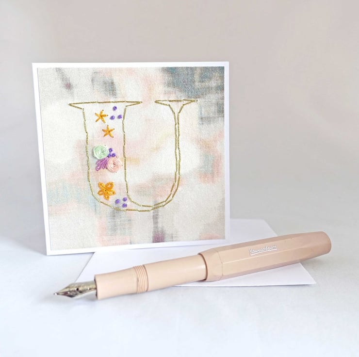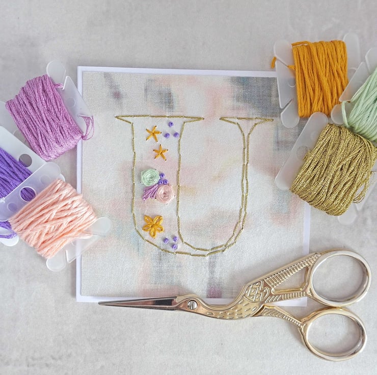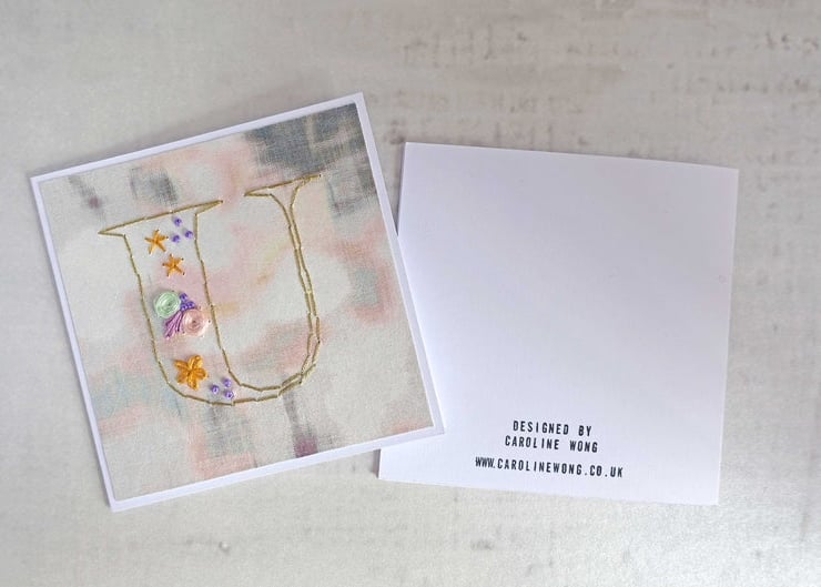 - Hand stitched with metallic thread for letter outline and filled with coloured cotton to give a tactile feel.