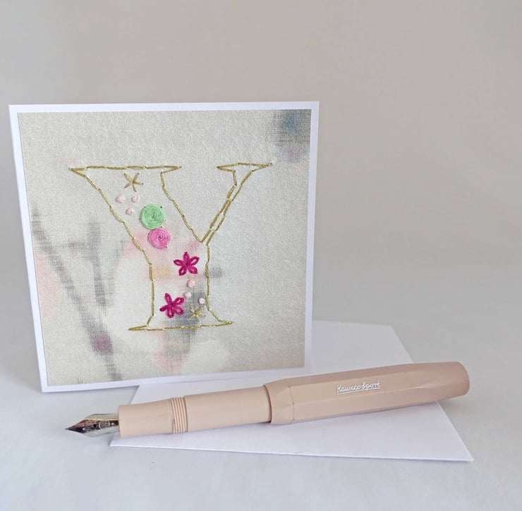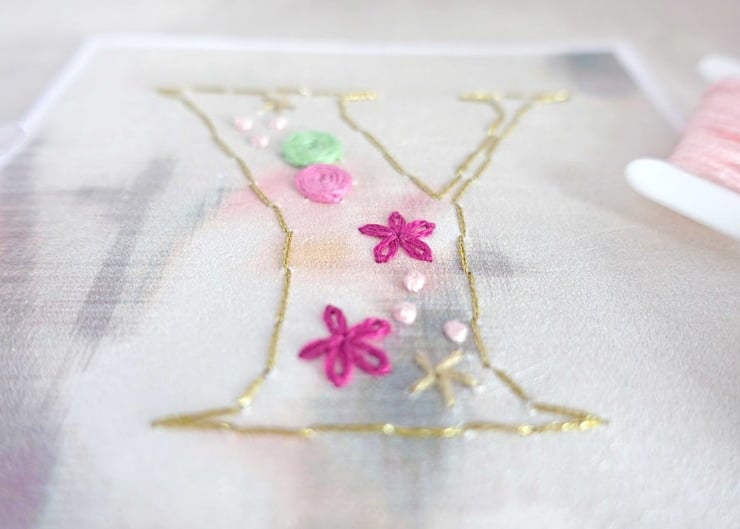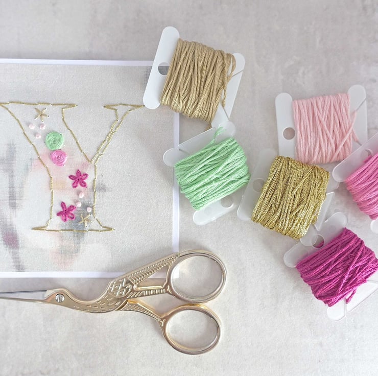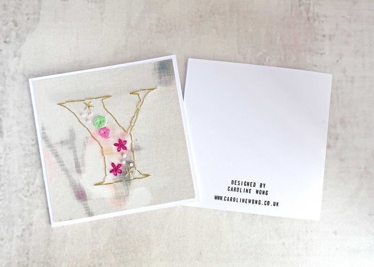 - Hand stitched with metallic thread for letter outline and filled with coloured cotton to give a tactile feel.