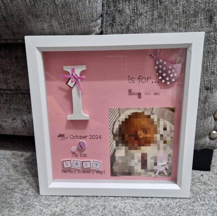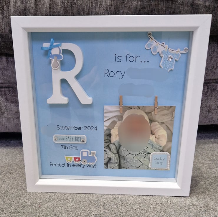 New Baby frame. Frames includes the baby's name (can be just first name or full name), date of birth and weight.