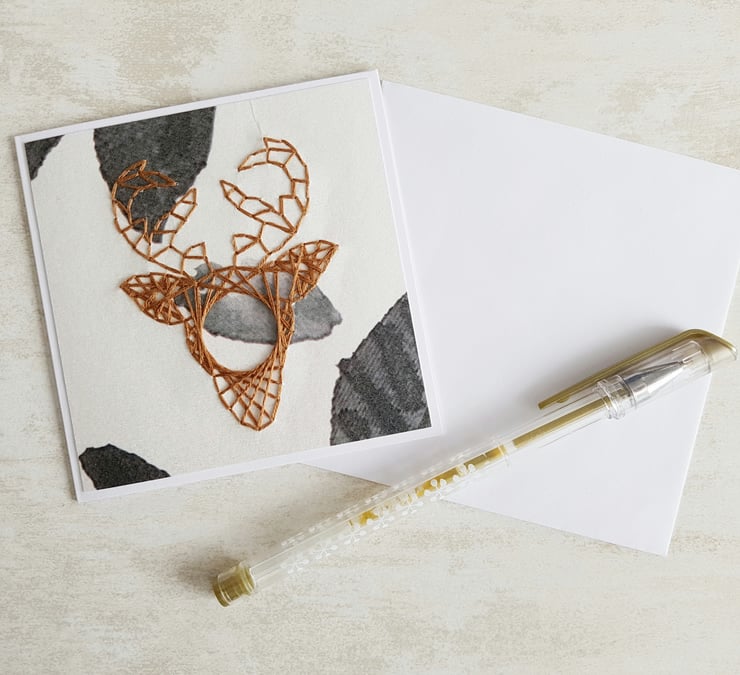 SALE Hand Stitched Brown Deer Card