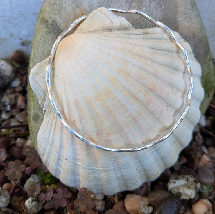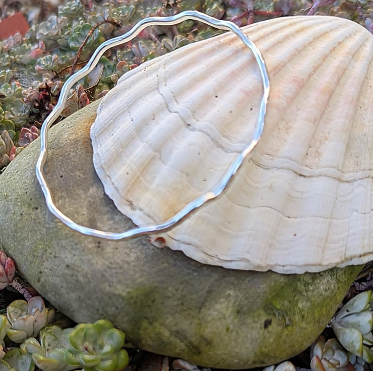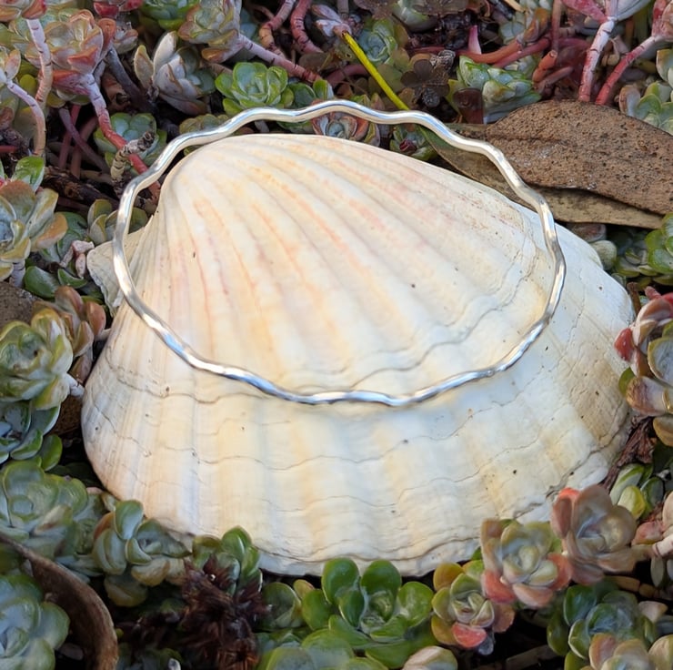 Here we have a textured, wavy bangle made from recycled 2mm sterling silver wire.