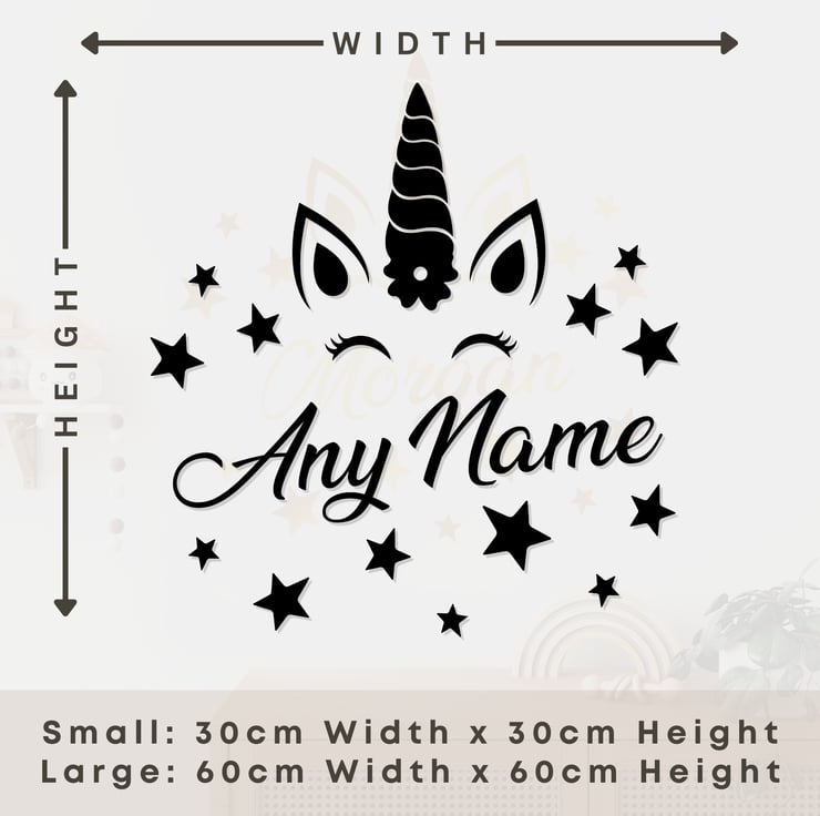 Bring a touch of enchantment to your child’s room with our Personalised Unicorn Name Wall Sticker! Featuring a whimsical unicorn design, twinkling stars, and your child’s name, this magical wall decal creates a dreamy and personalised space for your little one.
