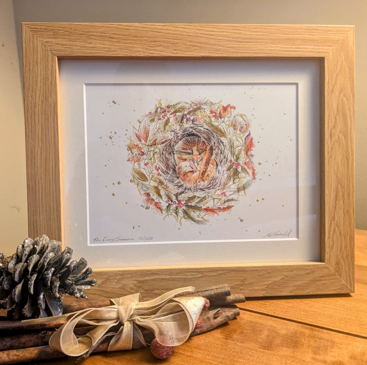 The Cosy Season (Dormouse) an A5 or A4 limited edition ,hand finished print