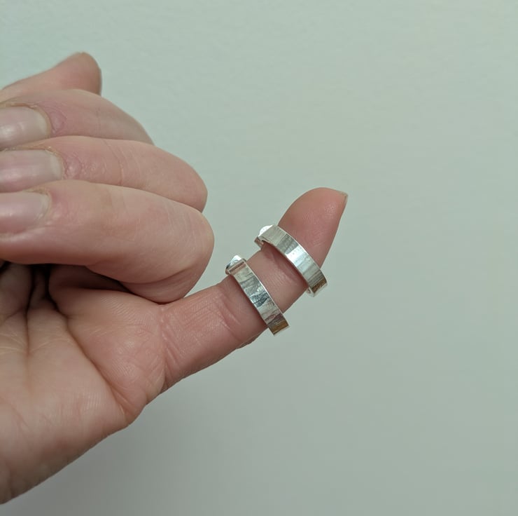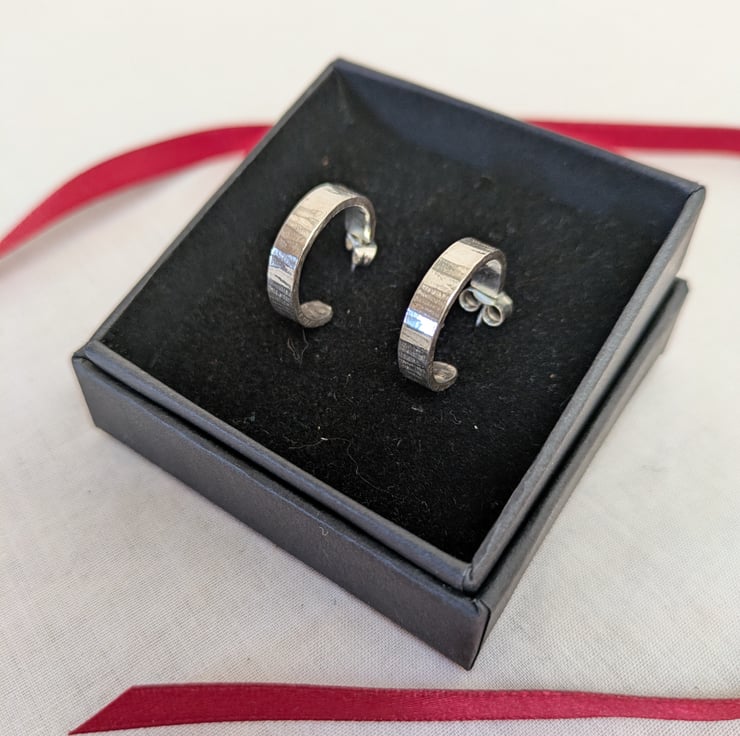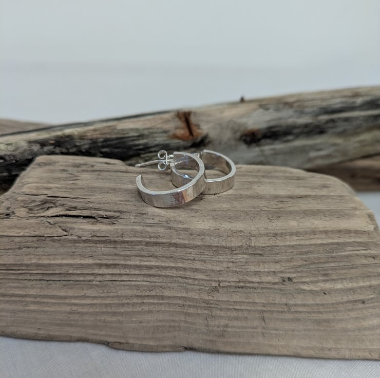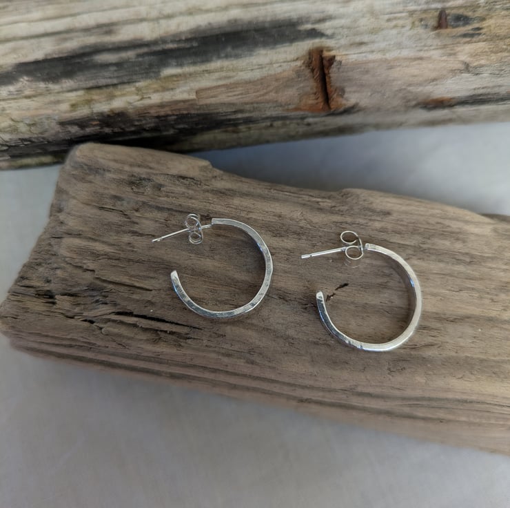 A classic pair of hoops, in a lovely wearable size. Handmade by me, and finished with a hammered texture. This pair has been fully hallmarked.