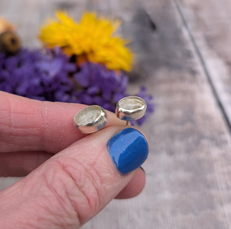 Recycled Sterling Silver Rutile Quartz Stud Earrings