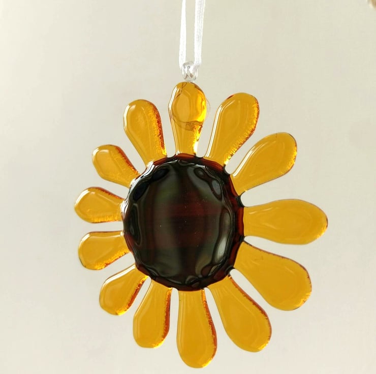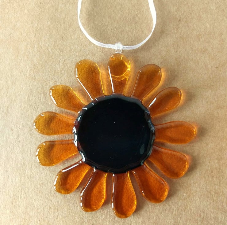 These fused glass sunflowers have been handmade by me in my studio in the Wye Valley.