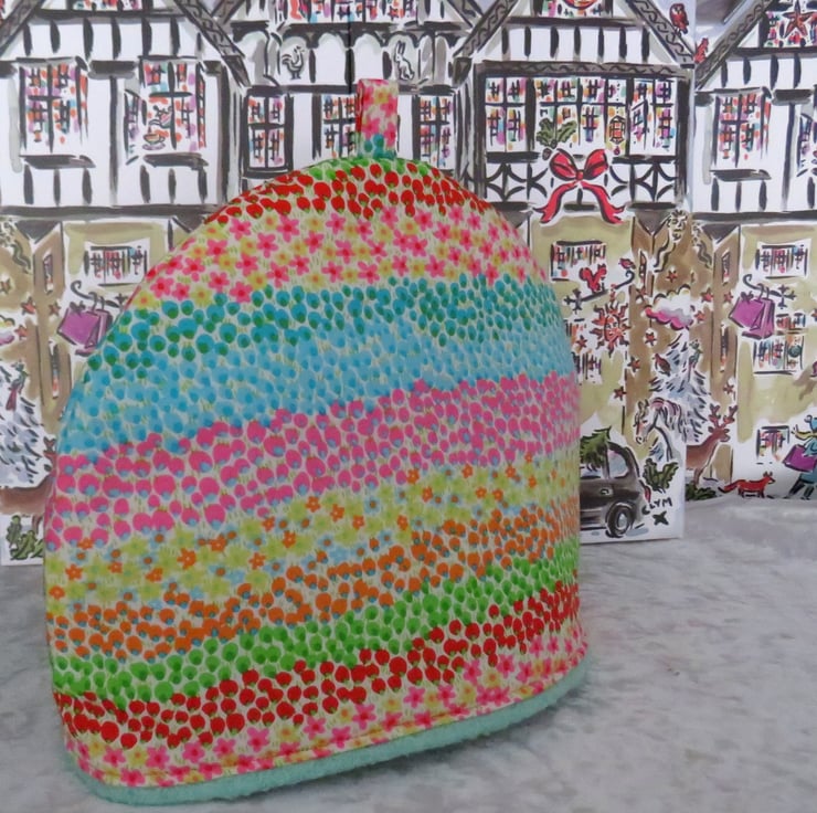A small sized tea cosy, made to fit a 2-3 cup teapot.