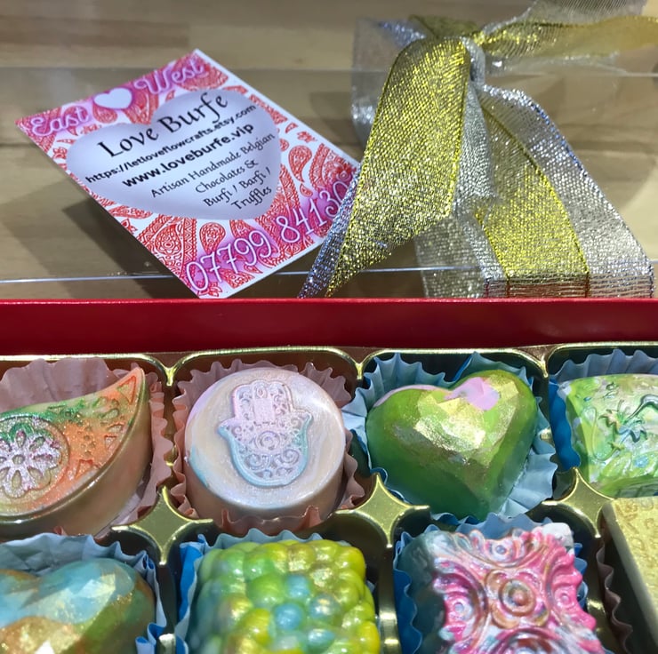 My Real life Contemporary Love Story of a Western Girl falling in Love with an Eastern Man and against all odds set out on a Magical Journey to be together, on our 7th Wedding Anniversary we Celebrated the landmark by Creating Beautiful Hand Crafted Hand Painted Chocolates marrying both Cultures, Belgian Chocolate with Burfi or Barfi as it is known - we changed the name of Burfi or Barfi to a more Contemporary name to Burf-e for our own Brand “Love Burf-e”. We wanted to only used the finest ingredients to make the taste of our Burf-e how it would taste in an Eastern Native Town and we are now selling Love Burf-e Internationally. This Brand symbolises to us how Real Authentic Soul Mate Love can climb any mountain and achieve Benevolence against all odds. These Chocolates carry real passion.