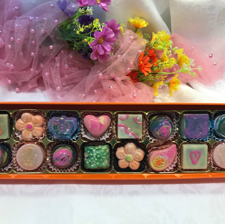 Chocolates are unique and each batch may vary slightly from the images, as hand each Chocolate is hand crafted with creative artistry expression in a bespoke manner.