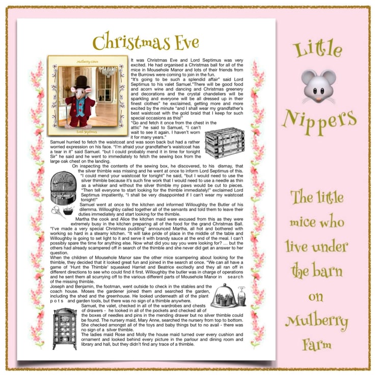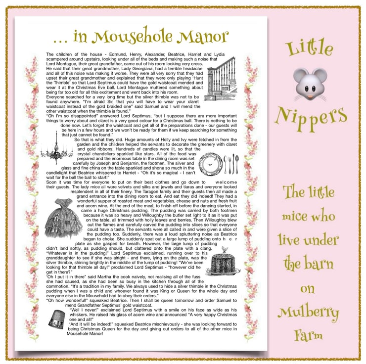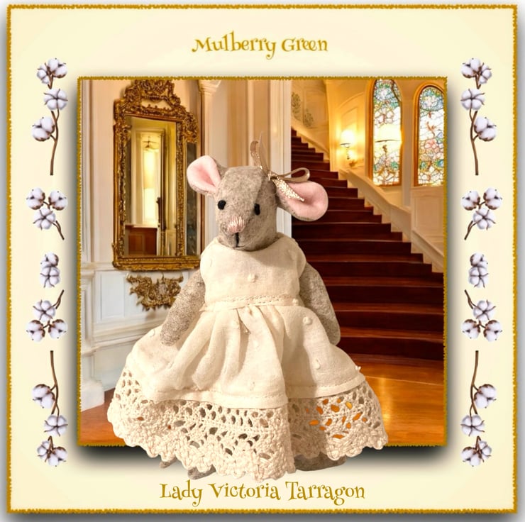 Lady Victoria Tarragon, in her pretty Swiss dot muslin dress with cotton lace hem and matching bow, is one of the aristocratic Tarragon family of Little Nippers, who live in Mousehole Manor, at the far end of the Burrows underneath the barn at Mulberry Farm. The Little Nippers are all 14cm tall.