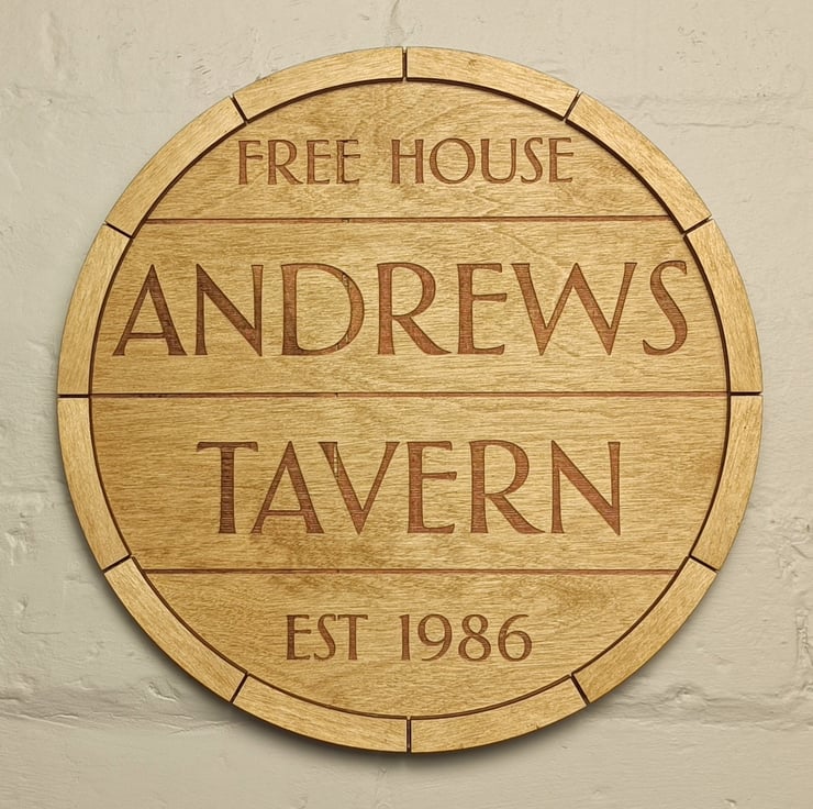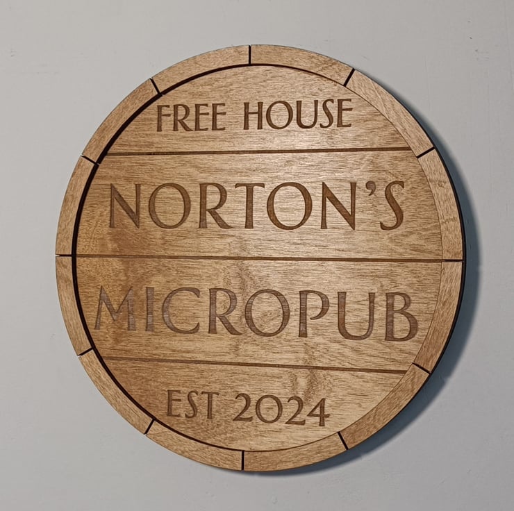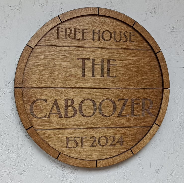 The front of the sign is made from birch plywood and has the surrounding edge built up to give a 3D effect with the back of the sign made from 6mm MDF for strength. You can choose either an oak or walnut varnish applied to mirror the colour of actual barrels.