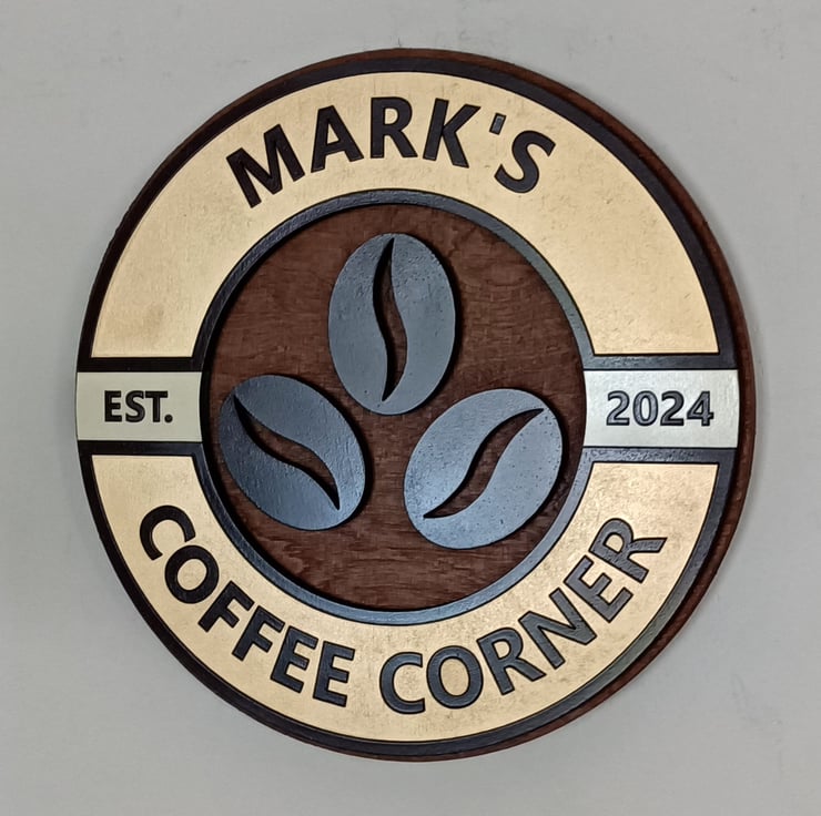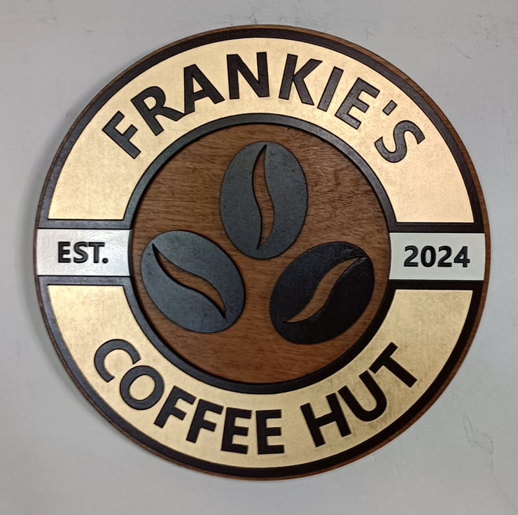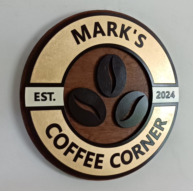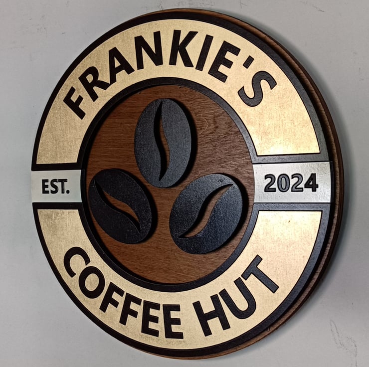 This unique sign has a vintage inspired colour scheme with gold and dark brown outer ring with cream and brown side panels containing the established date of your choice with the centre design of large brown coffee beans.