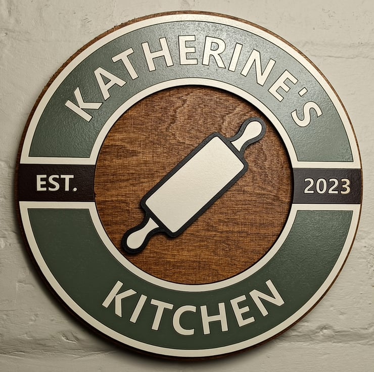 If you have bare walls in your kitchen and are looking to brighten up the space then this personalised round painted wooden sign may be perfect you. This unique sign has a vintage inspired colour scheme and uses satin slate blue, sage green, red, dark grey or French Lilac as the main background colour with a cream and a gloss brown for contrast with a choice of centre motifs to personalise it to you, choose from either a teapot, rolling pin or cutlery designs.