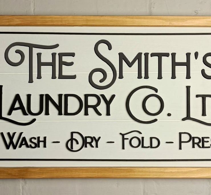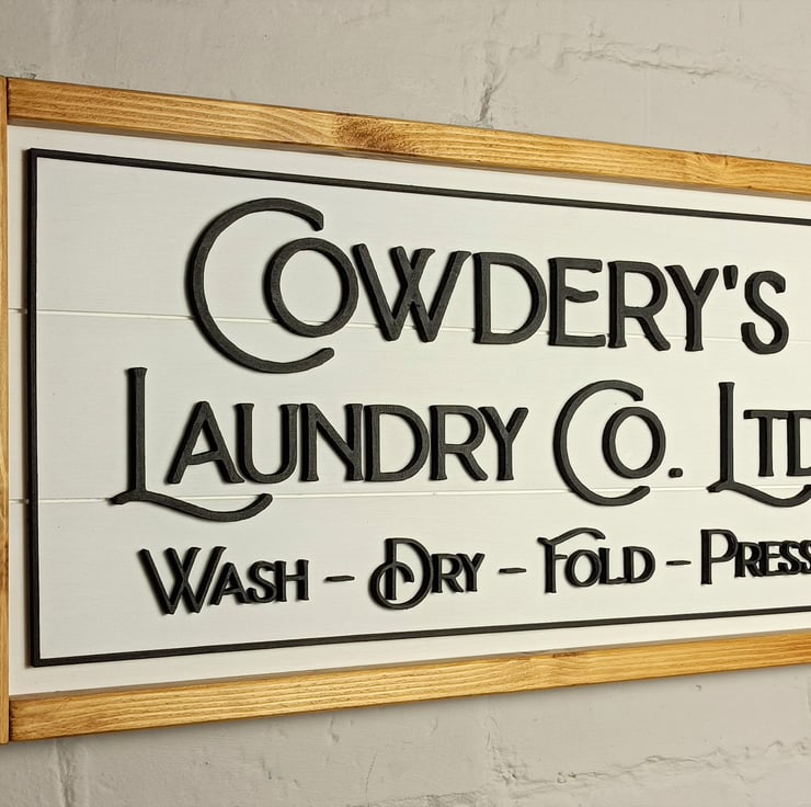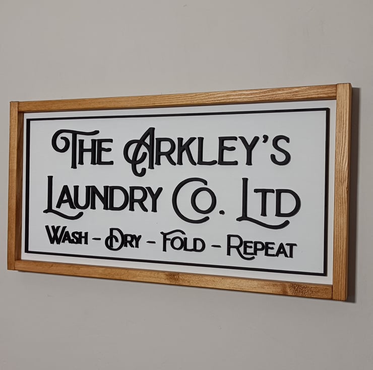 With this large personalised sign you are able to specify the first line of the text to give you a unique sign tailored to your laundry room, utility room or kitchen. We use a vintage font that really sets off the design and you can choose to add your forename, surname or you can even celebrate the town that you live in and really make this sign your own.