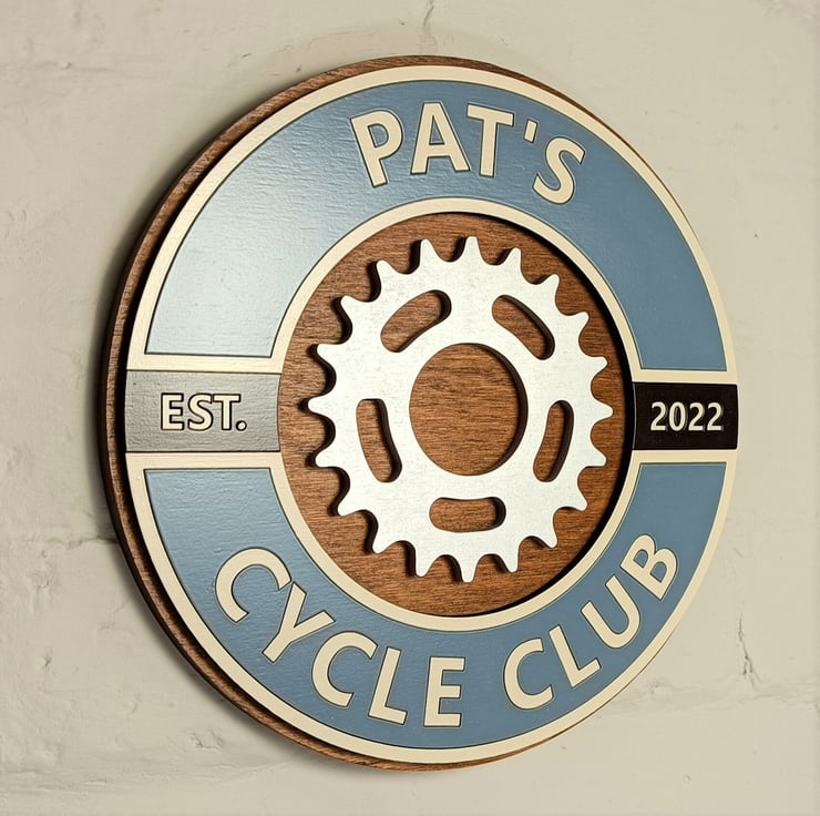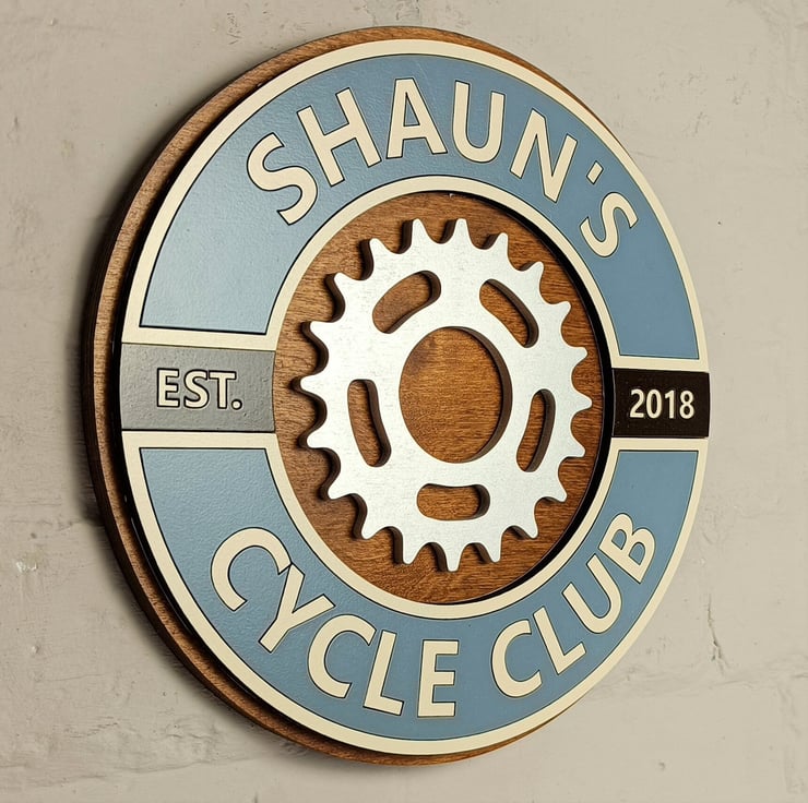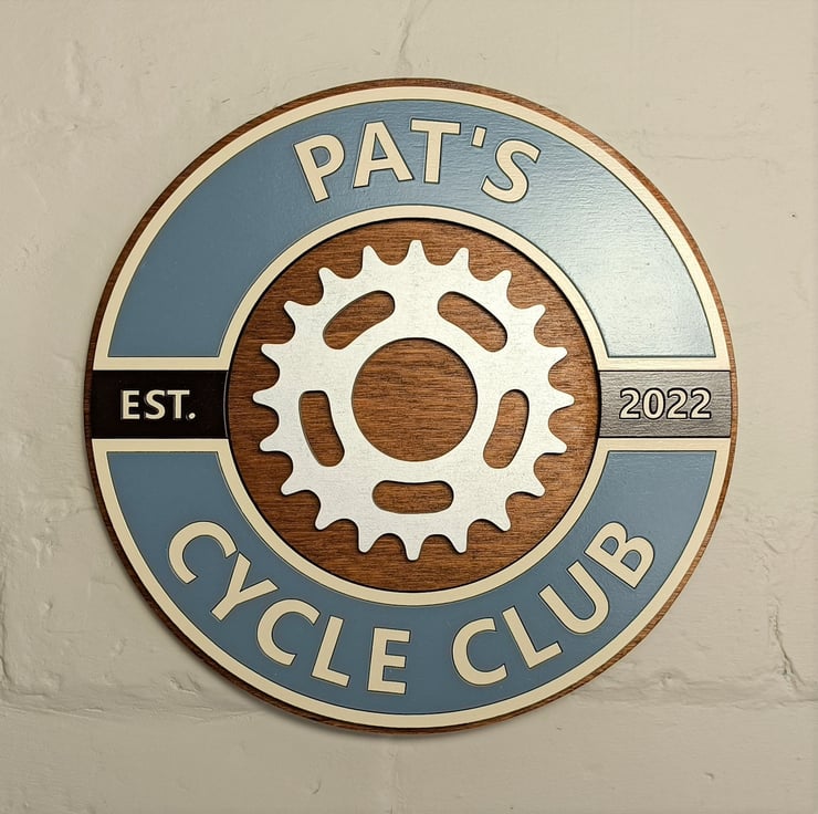 You can personalise all the text on the sign, both the top and bottom section and the date so if you didn't want the cycle club text you could have Dave's Man Cave or Donna's bike room or whatever takes your fancy, if you want we can provide a proof before you purchase just send us a message.