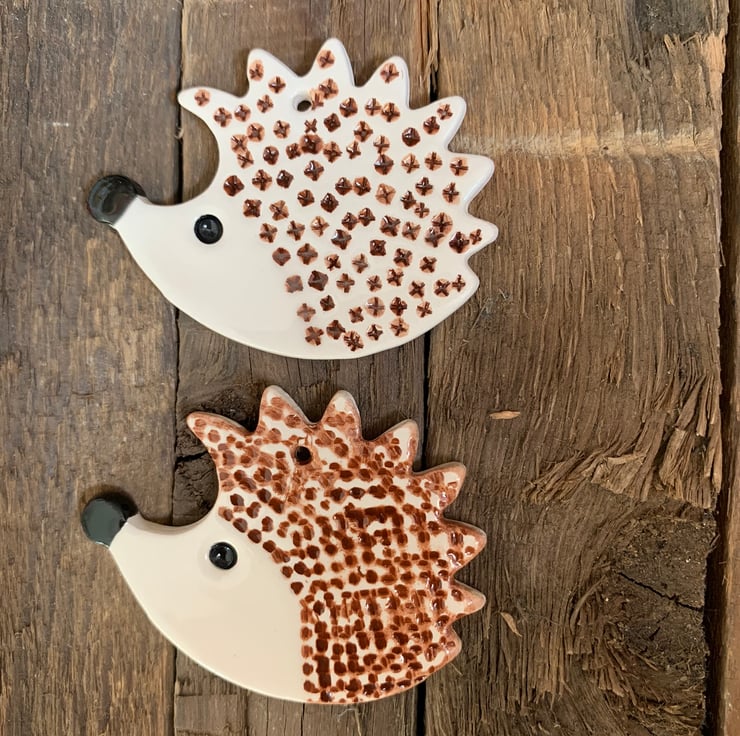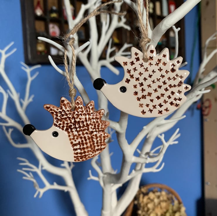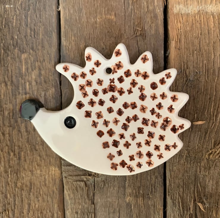 The Hedgehog is 6cm wide and 4.5cm tall. I have attached some twine for you to use.