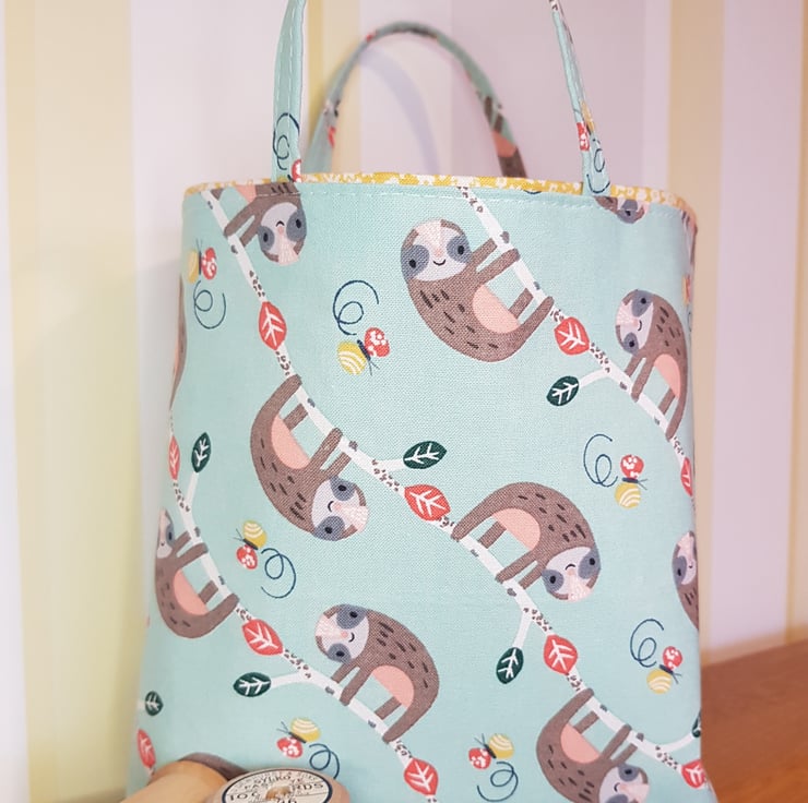 Reusable fabric gift bag: happy sloths