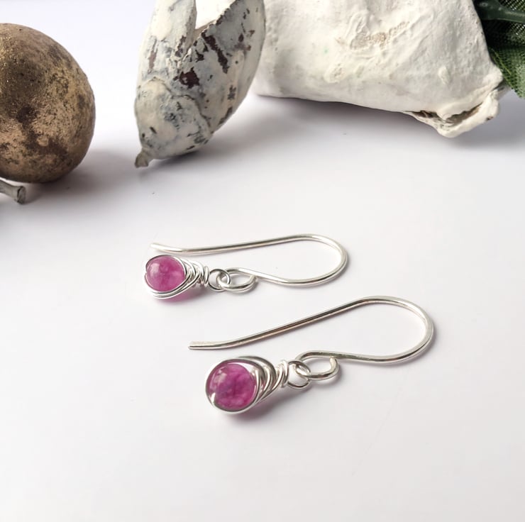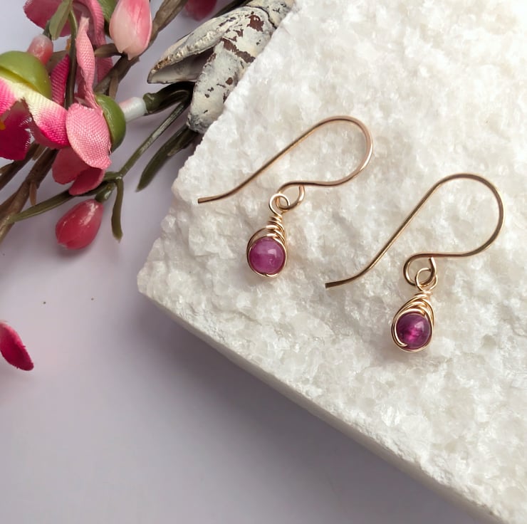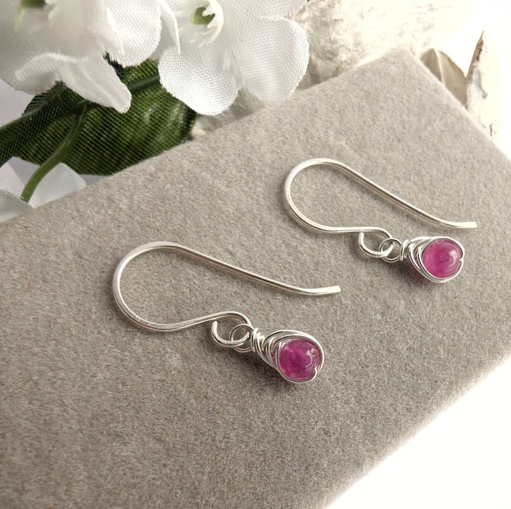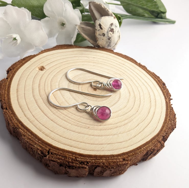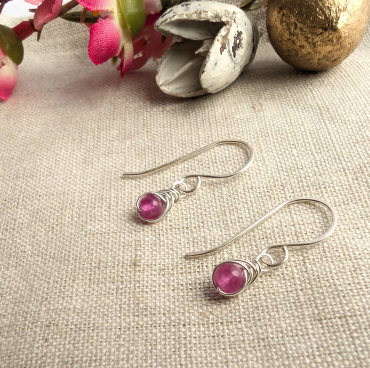 PINK TOURMALINE Earrings Sterling Silver, Dainty Earrings, October Birthstone