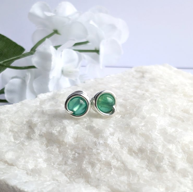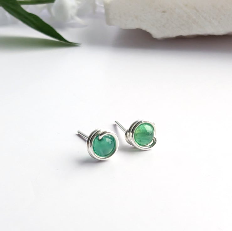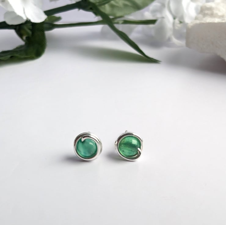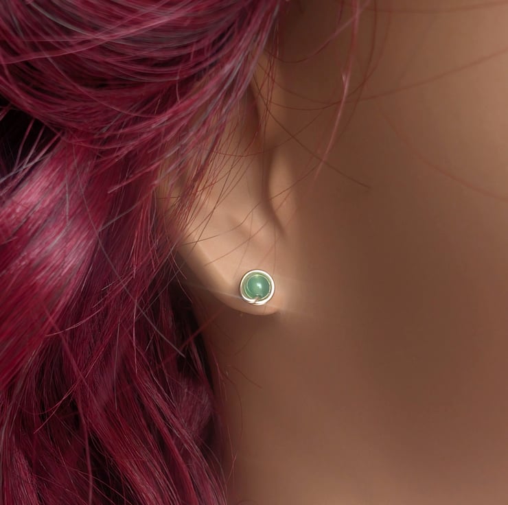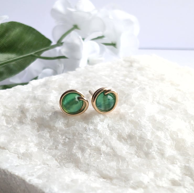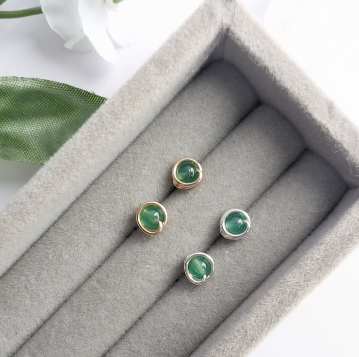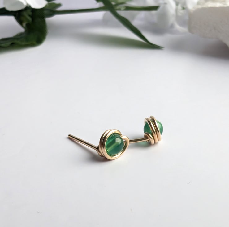 Delicate handmade ear studs featuring green onyx natural gemstone beads. Designed with a minimalist touch, these are simple lightweight studs that are perfect for wearing everyday. Available in Sterling Silver or 14K Gold Filled. These dainty earring studs would make a lovely gift for yourself or a loved one.