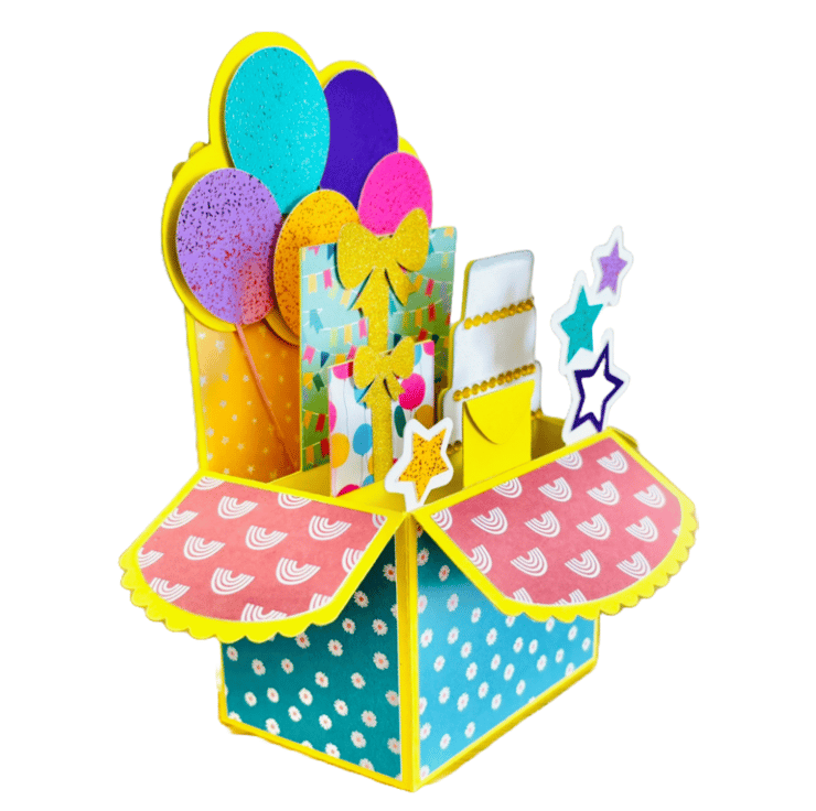 3D Balloon and Presents Pop Up Box Card, Birthday Celebrations