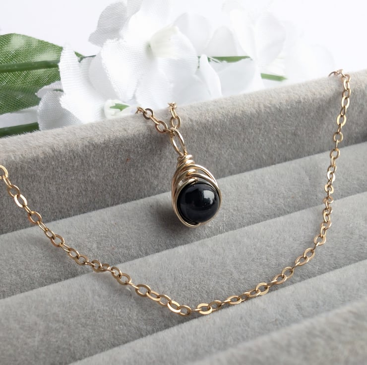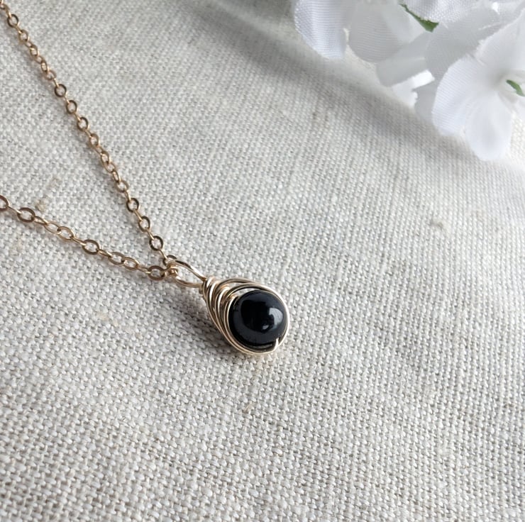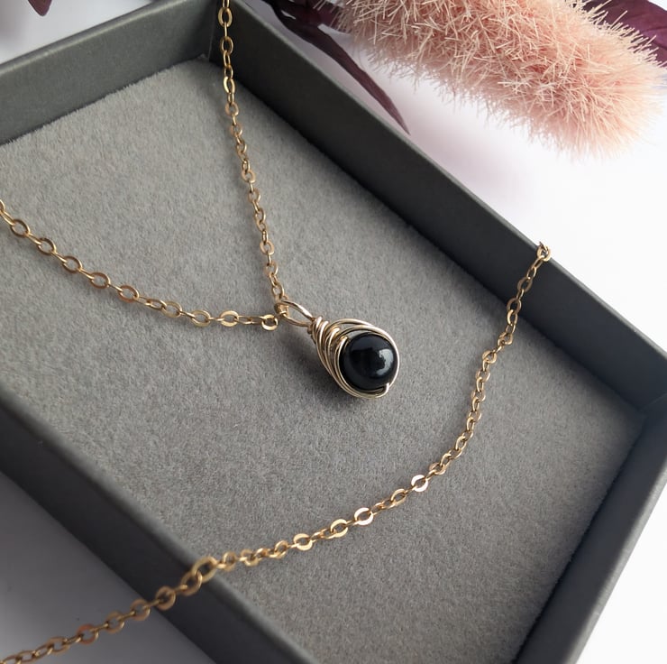 Delicate handmade 14K Gold Filled necklace featuring a black tourmaline natural gemstone bead. Designed with a minimalist touch, and perfect for layering. A simple lightweight necklace that is perfect for everyday wear. This dainty necklace would make a lovely gift for yourself or a loved one.