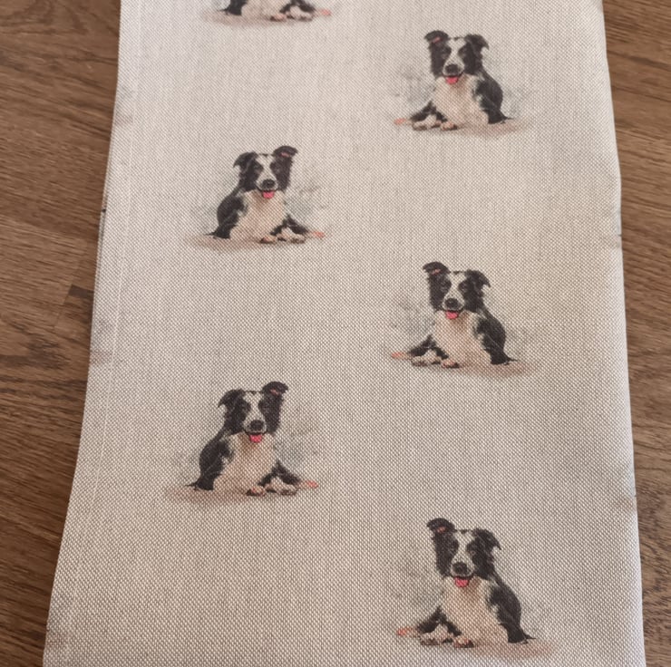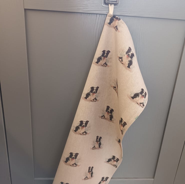 Border Collie Dog Tea Towel. Natural Linen look. With Free Delivery