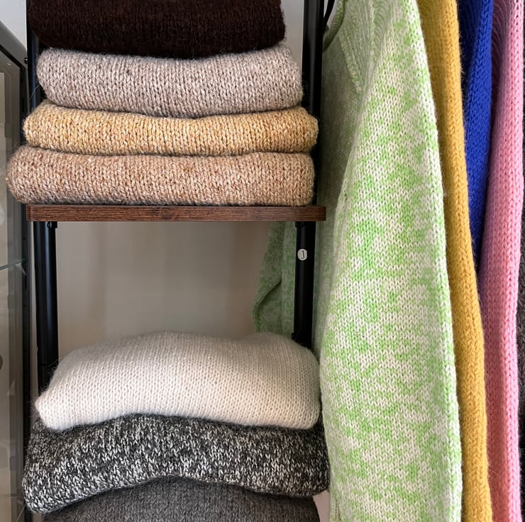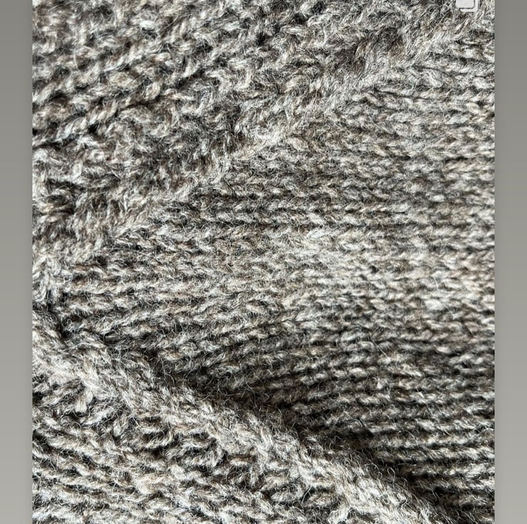 Hand knitted with needles, artisan handmade, there are slubs and irregularities which add to the unique quality. Some pilling is to be expected as pure lambswool.