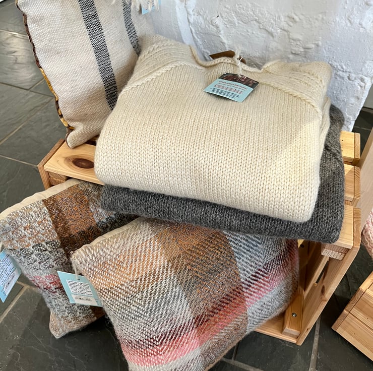 Inspired by endless horizons across the wild moor, river and the open sea. Handknitted, handspun, dyed or undyed and handwoven pieces evoke the changing colours and moods of ancient Dartmoor.