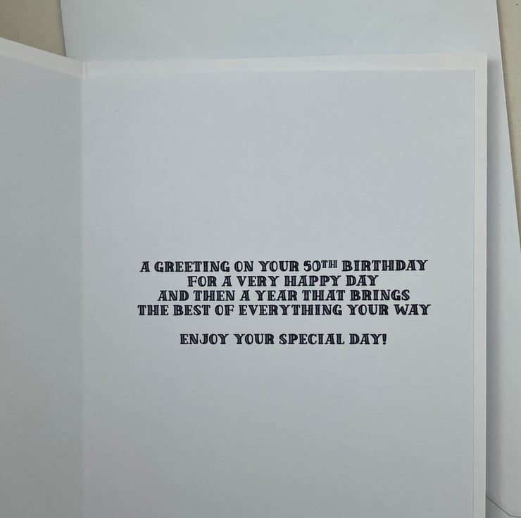The card measures approximately 15cm x 10cm (6 inches x 4 inches) and comes with a white envelope, in a sealed wrapper.