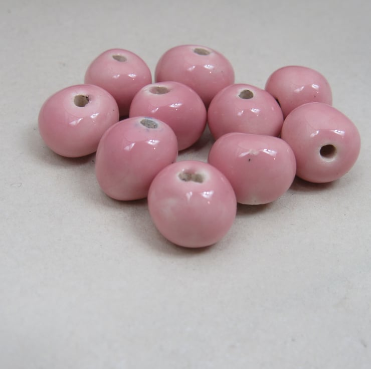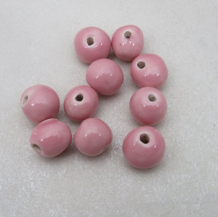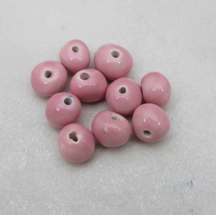 A mixture of handrolled ceramic beads, coloured with a pretty shell pink glaze