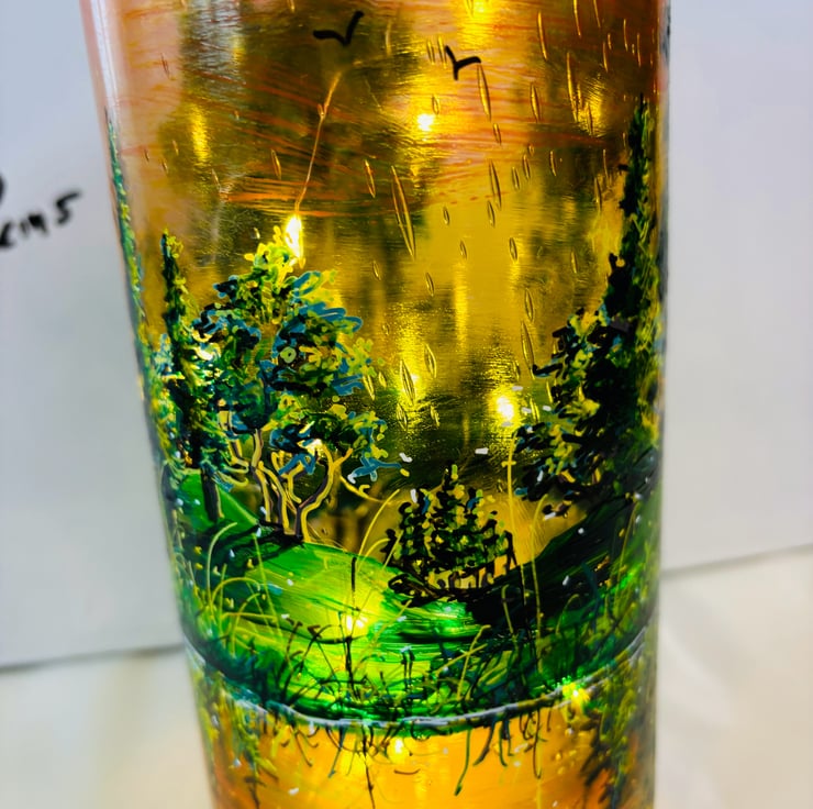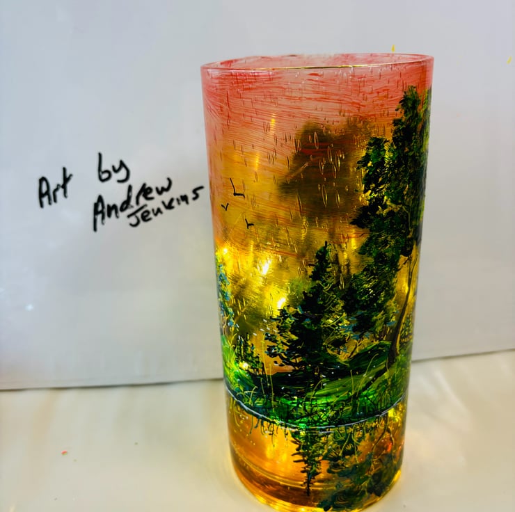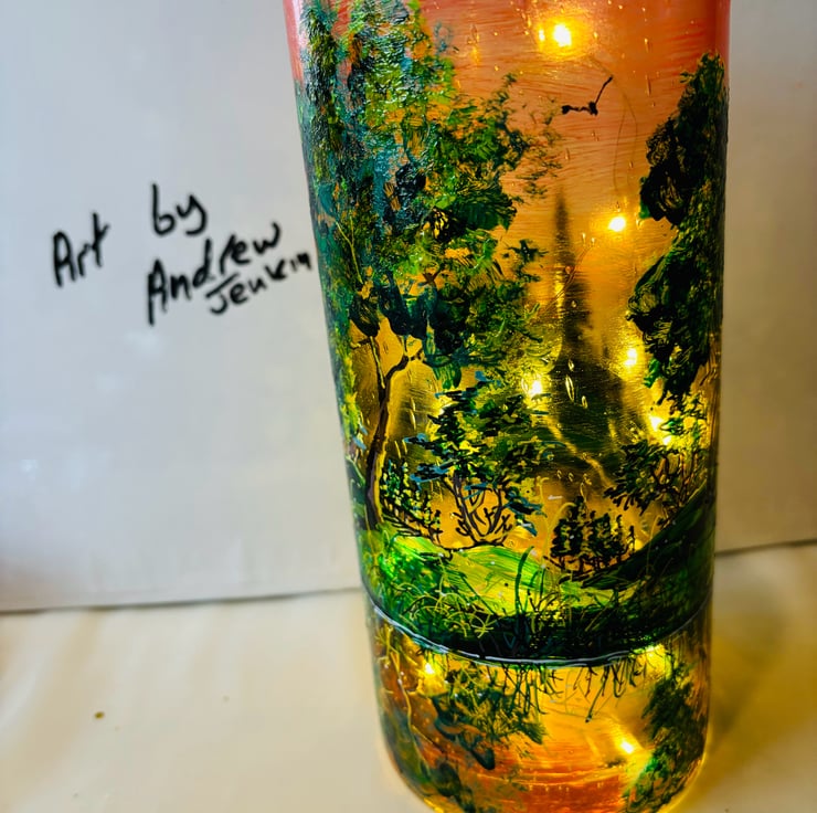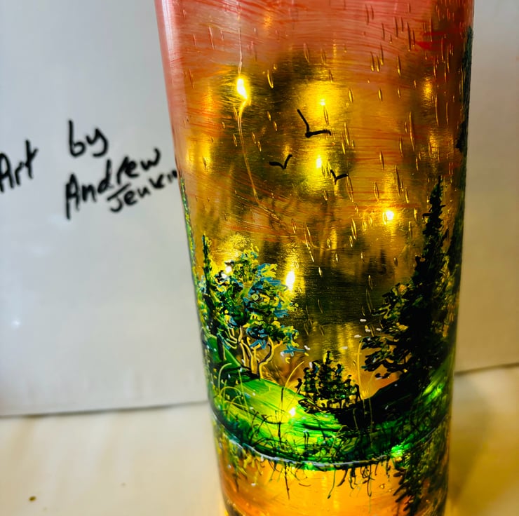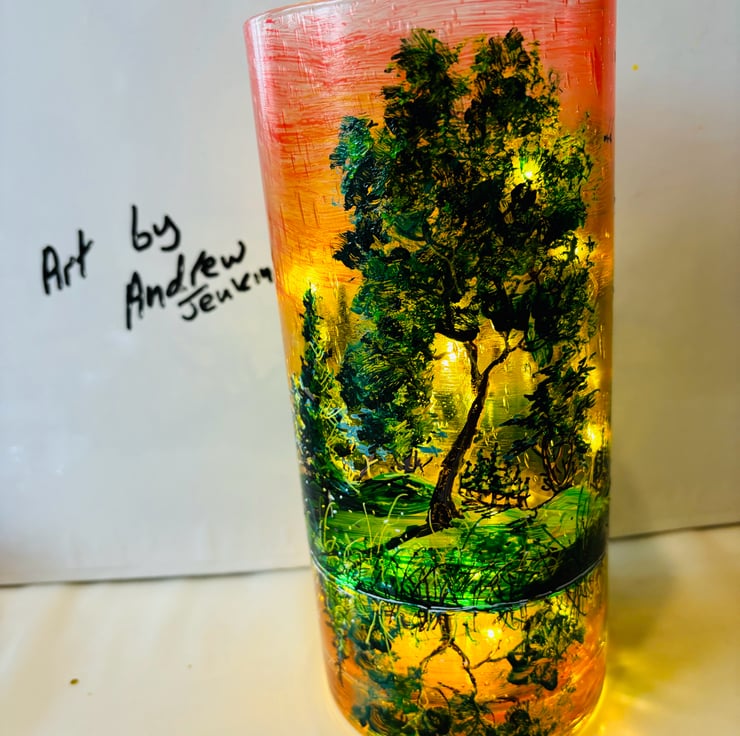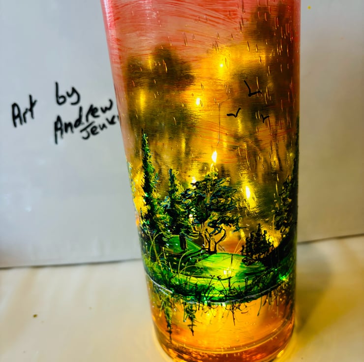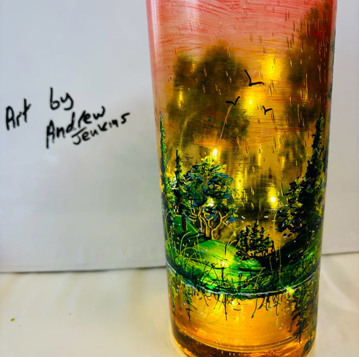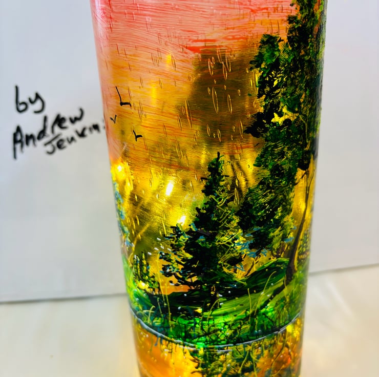 A hand painted and fired glass vase by Andrew Jenkins