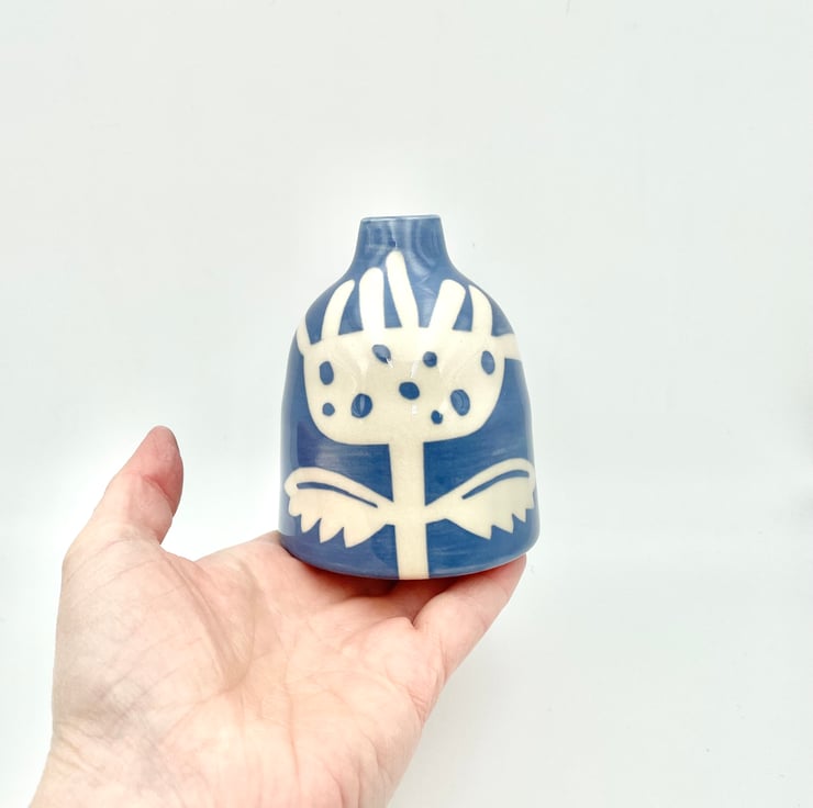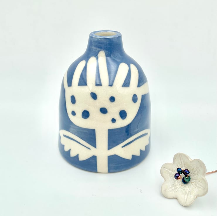 With a narrow neck, this little vase is ideal for a few thin stems. Also perfect for my ceramic flowers (please see separate listings for these).