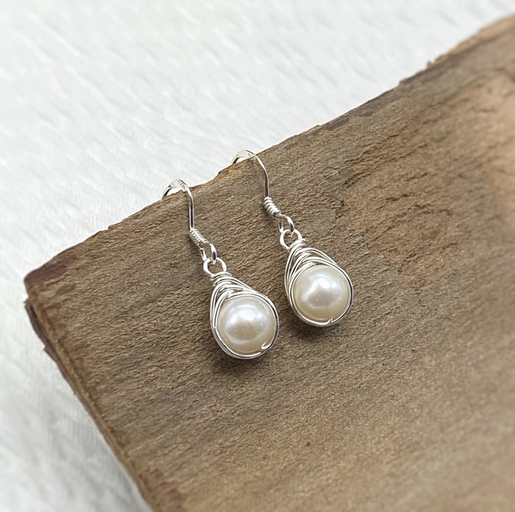 These pretty drop earrings were created using the herringbone wire weave. I used sterling silver wire for the weave, the hook earwires are also sterling silver.