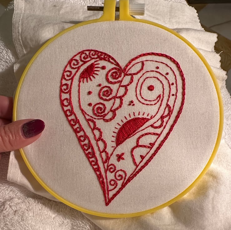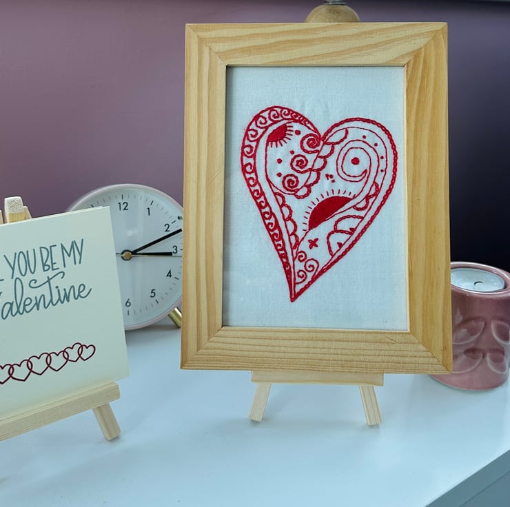 Embroidered heart in a frame, gift of love, birthday ,engagement, anniversary