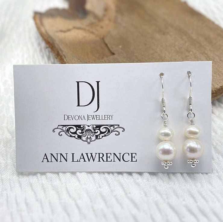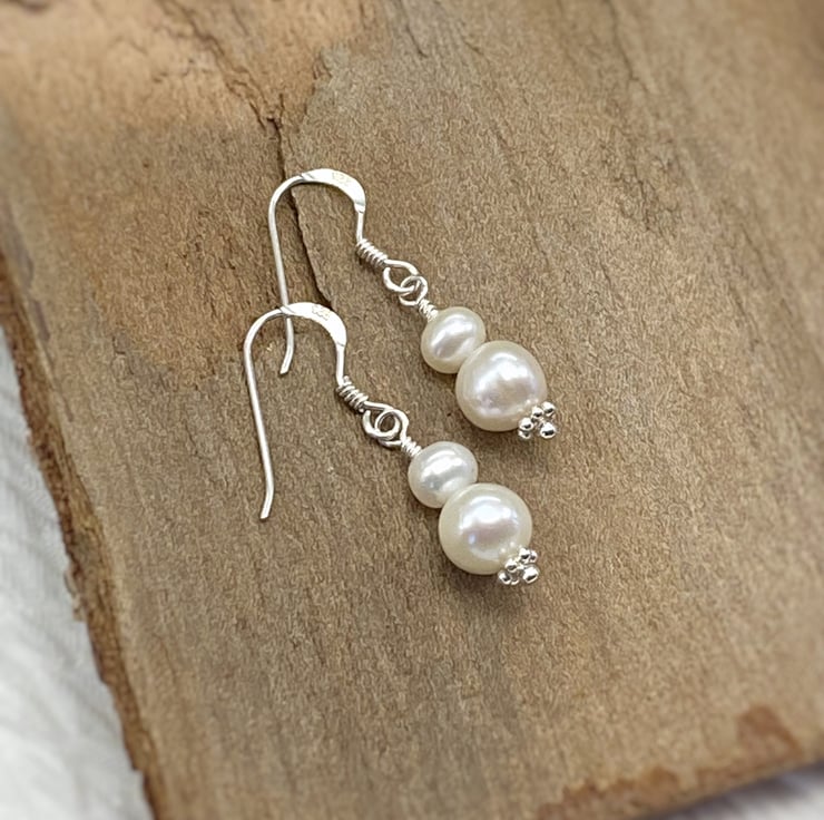 These elegant pearls are paired with sterling silver beads and hook earwires.