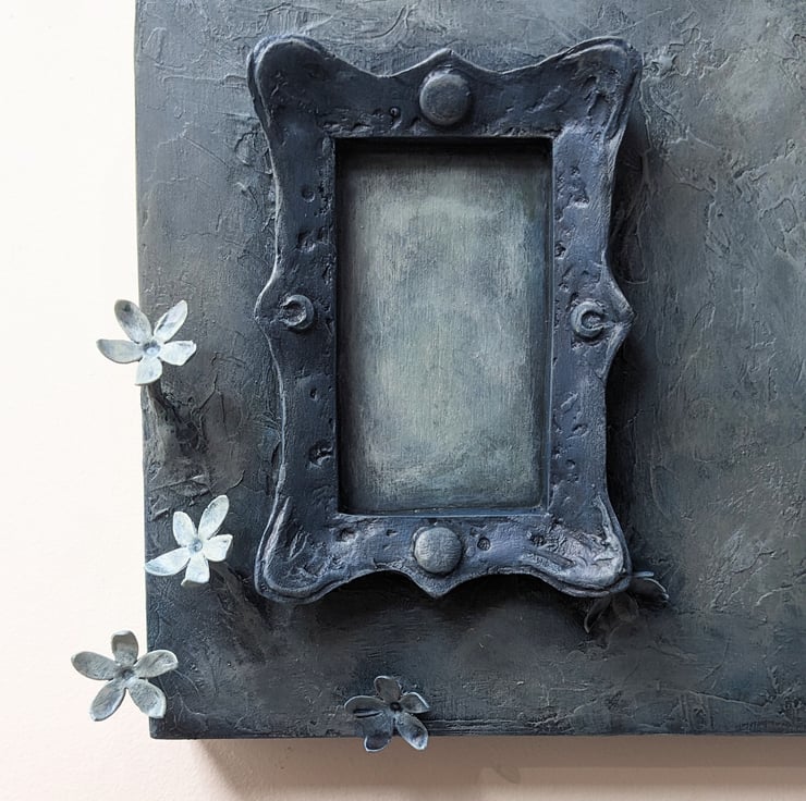 'The frame on the wall appeared to have depth to it, the surface dissolved and a soft glow emanated slowly out of it. I felt as though I could reach in, as though there was a great empty space behind the wall, a way through, a void of unimaginable depth. A few delicate flowers sprouting out of the wall, one of the petals unfurls and drops, falling to the floor.'