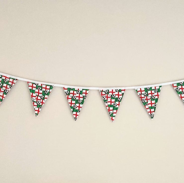 Football themed bunting. England double sided cotton fabric. 1 meter, 5 flags.
