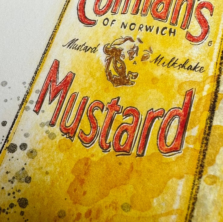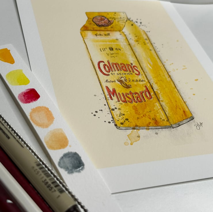 An amazing watercolour piece for the kitchen or any social space. Inspired by the fabulous colour of mustard and its versitility in cooking. Milkshakes are great right? People love mustard. But would you drink a mustard milkshake?