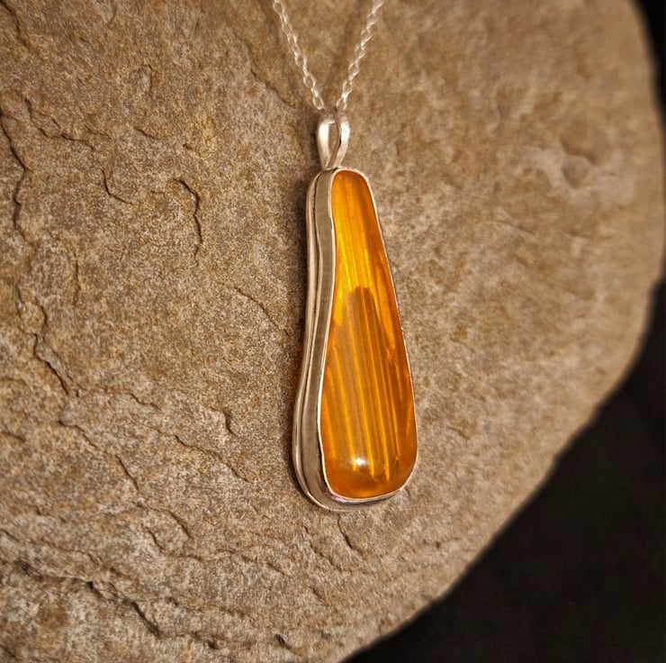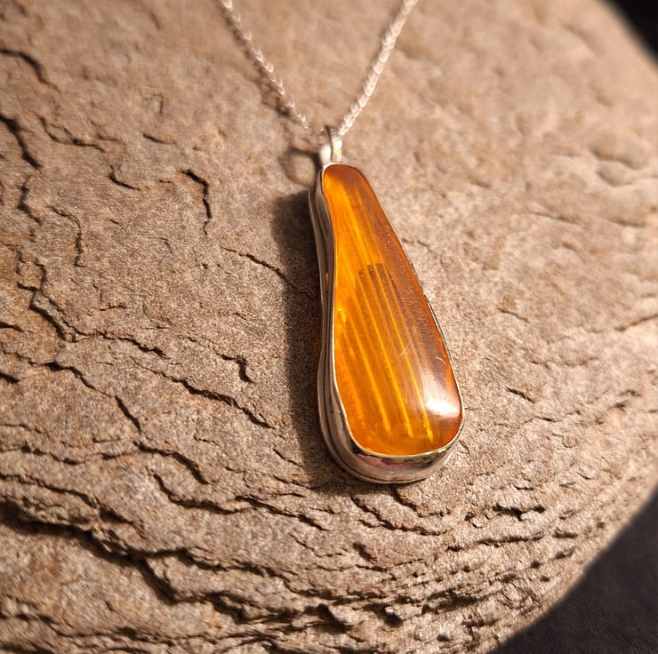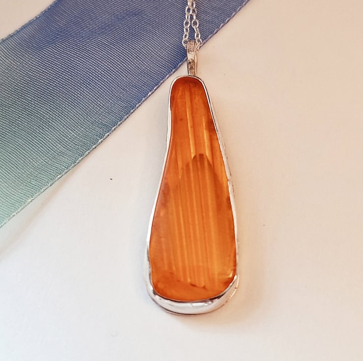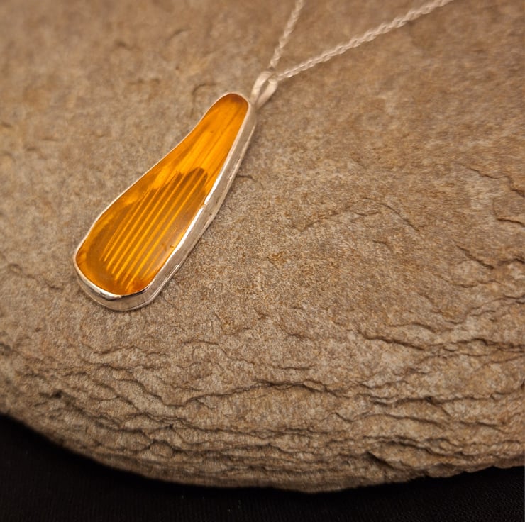 This lovely long pendant highlights a piece of ridged acrylic plastic found on a beach at the start of this year. It's quite experimental and has lumps n bumps like a truly handmade piece. It's a true one off.