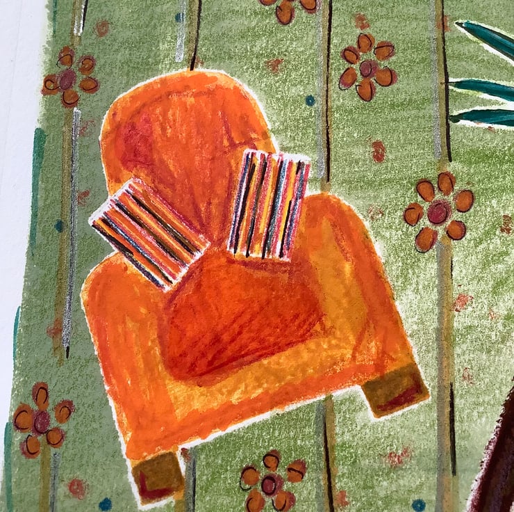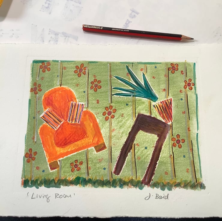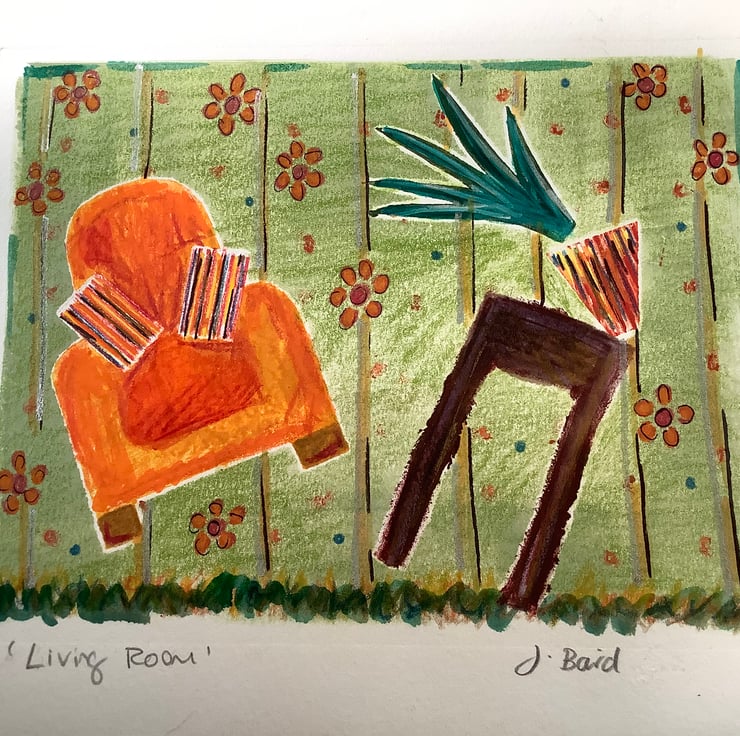 It is bright and colourful and depicts a happy home.